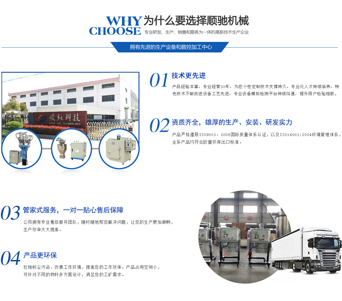 鹽城市順馳機(jī)械科技有限公司是一家專業(yè)從事電加熱設(shè)備、橡塑機(jī)械、化纖機(jī)械設(shè)備、化纖清洗設(shè)備、涂裝機(jī)械、烘干設(shè)備、環(huán)保設(shè)備、電熱電器的研發(fā)、生產(chǎn)、銷售和服務(wù)為一體的生產(chǎn)企業(yè),主要生產(chǎn)的產(chǎn)品有: 真空吸料機(jī),真空粉末吸料機(jī),失重式喂料機(jī),真空粉末上料機(jī),真空煅燒爐,稱重式混料機(jī)、導(dǎo)熱油加熱器、色母計(jì)量系統(tǒng)、原料輸送系統(tǒng)、混合機(jī)、空氣加熱器、熱風(fēng)爐、電加熱器等。 公司占地13333平方米,擁有先進(jìn)的生產(chǎn)設(shè)備和數(shù)控加工中心。公司地處世界珍奇動物麋鹿保護(hù)區(qū)和國家一級丹頂鶴自然保護(hù)區(qū)&... [